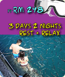 Tioman Island  Tioman, reputed as one of the world's most beautiful island, prides itself with miles of white sandy beaches, crystal clear azure seas rich with marine life and colourful coral gardens. Located off the east coast of Peninsula Malaysia, nestled amidst the South China Sea, this picturesque tropical rainforest island is the perfect getaway for an idyllic holiday. more |